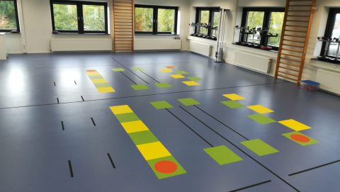 Junckers Unbat62+ vlakverende sportvloer voorzien van vloerverwarming.
