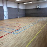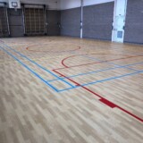 In opdracht van gemeente Amstelveen bestaande vlakverende houten sportvloer (285 m2) gerenoveerd door het aanbrengen van een nieuwe Taraflex Surface pvc toplaag.
