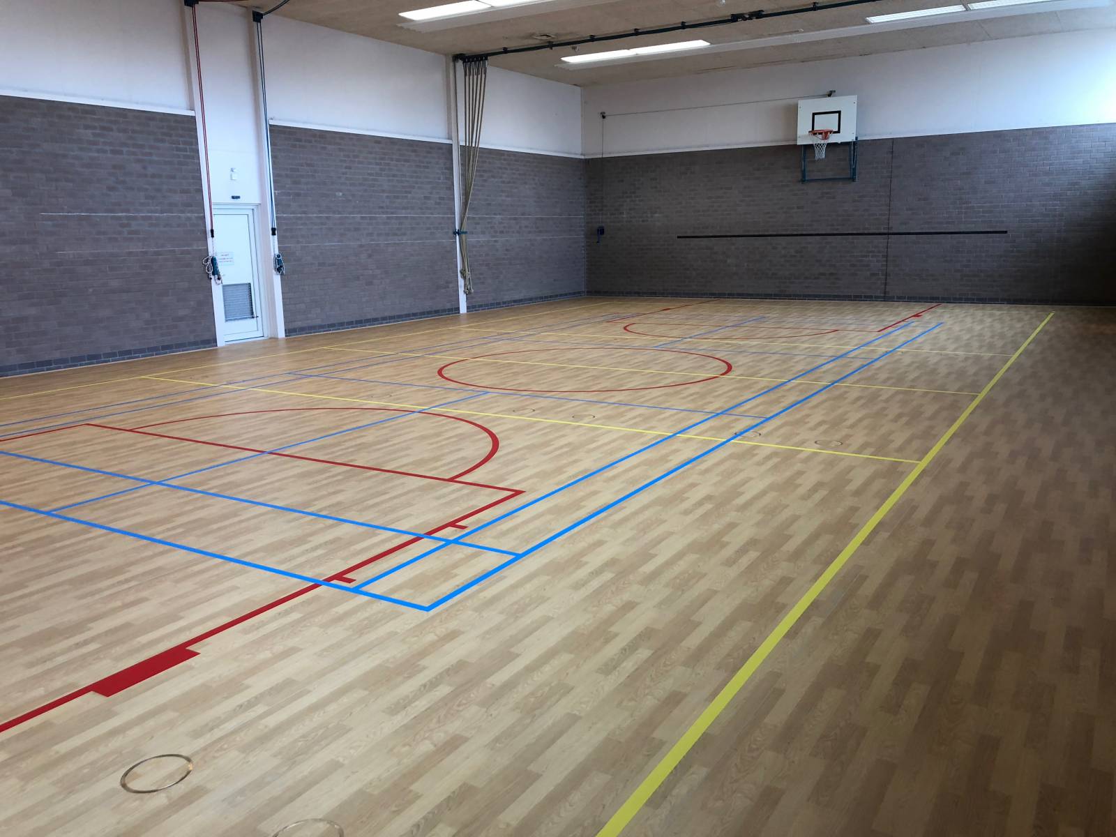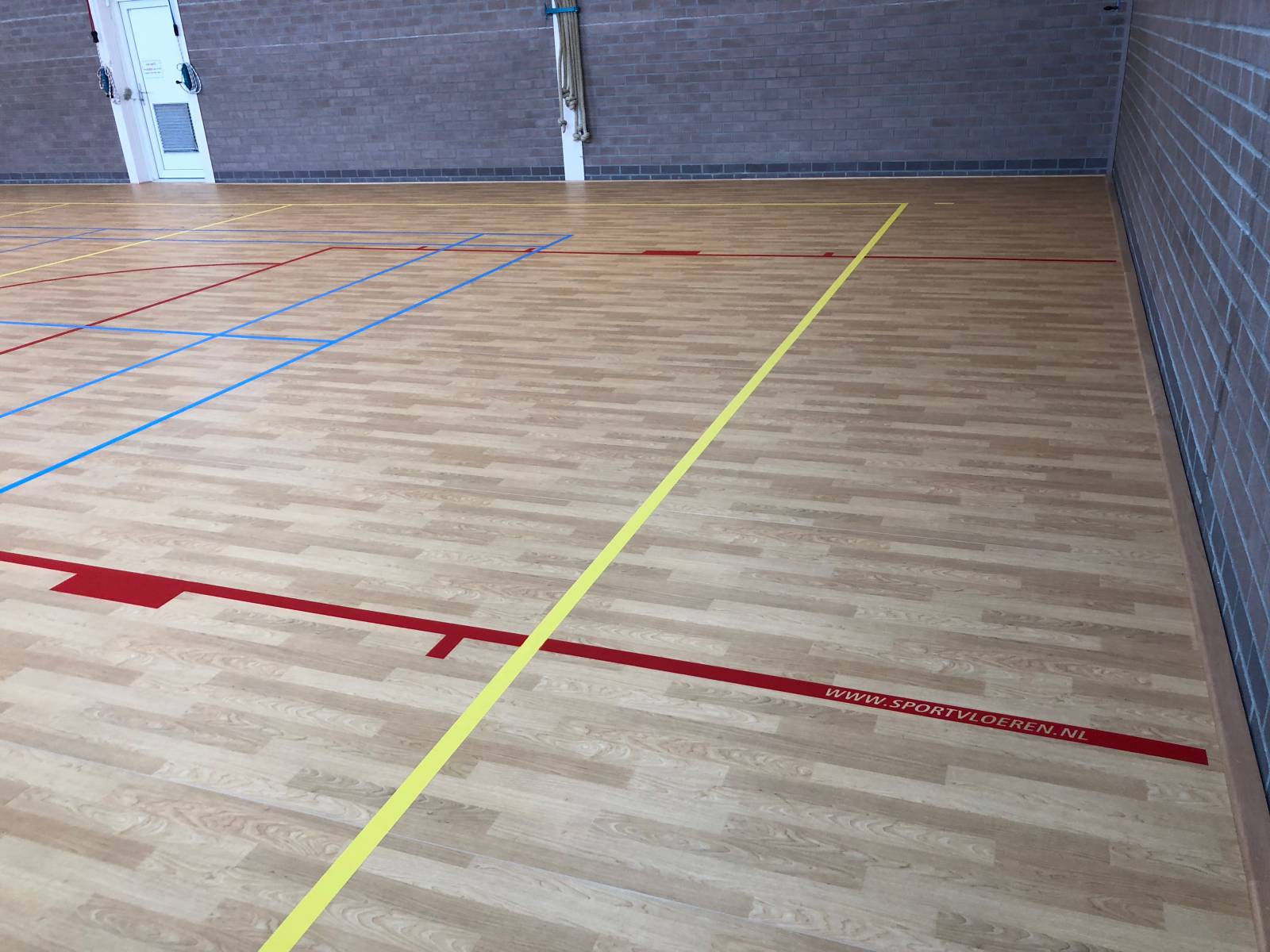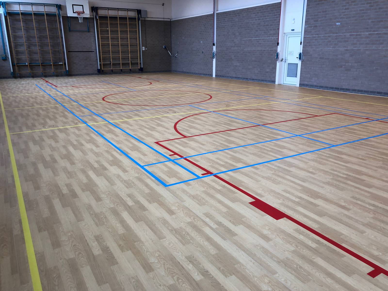 In opdracht van gemeente Amstelveen bestaande vlakverende houten sportvloer (285 m2) gerenoveerd door het aanbrengen van een nieuwe Taraflex Surface pvc toplaag.