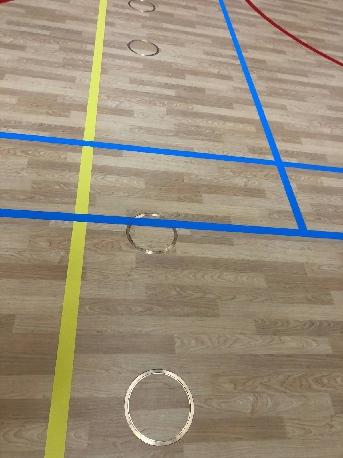 Renovatie bestaande Junckers sportvloer uit 1990 met behoud van vlakverend karakter door deze te voorzien van nieuwe pvc toplaag.