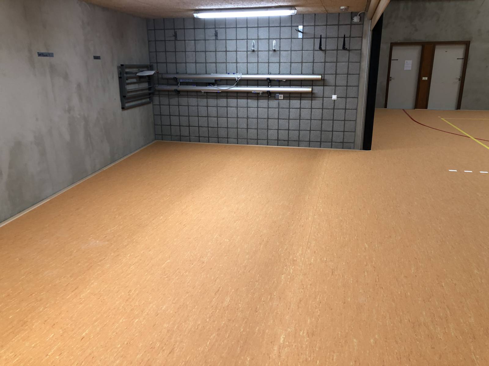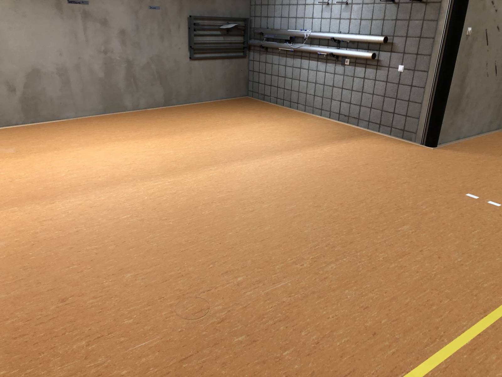 Installatie Populair Sport sportvloer met Linodur Sport toplaag
