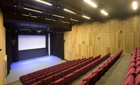 Theaterzaal: 165 m2 (kleur donker grijs)